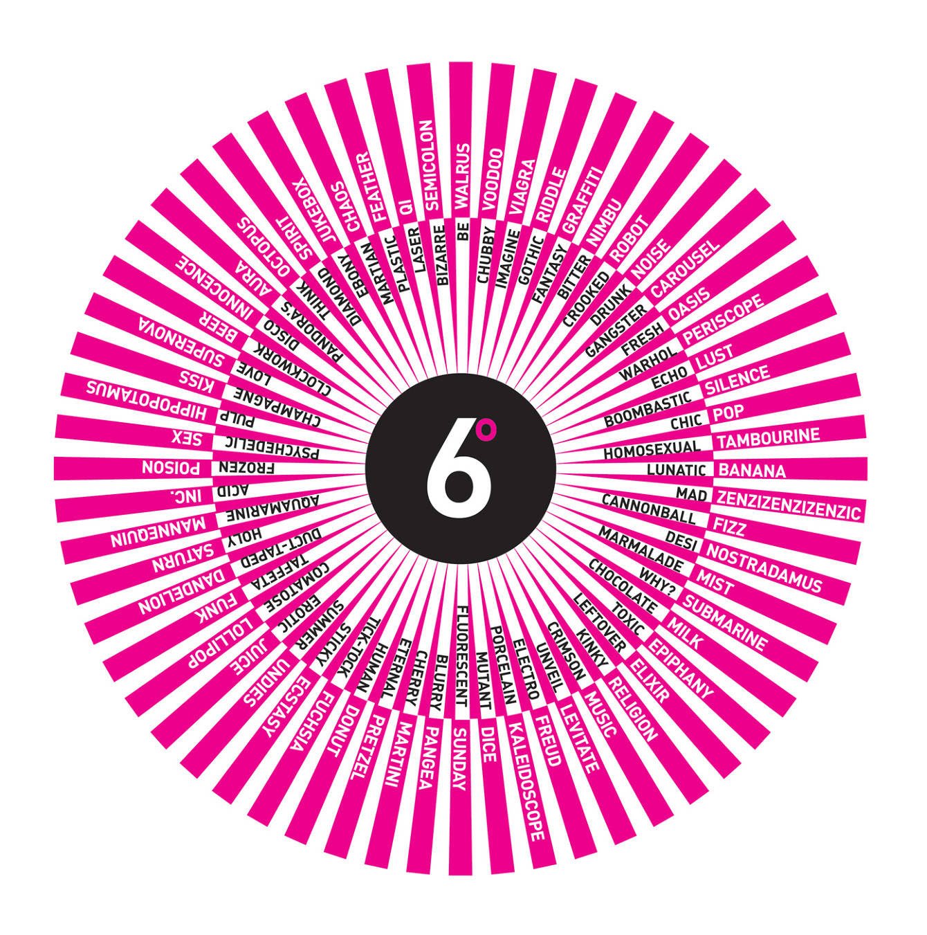 We named the installation 6° as that was the distance between each word on the wheel.